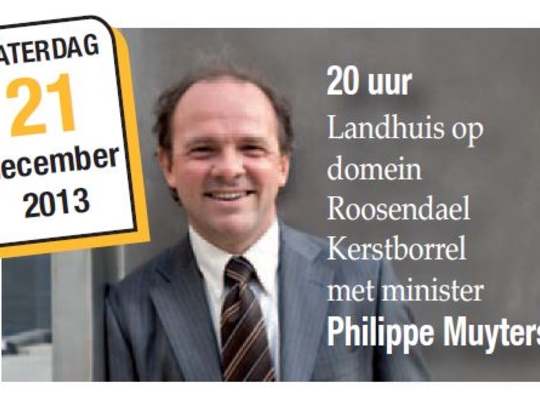 Iedereen was welkom op onze Kerstborrel met minister Philippe Muyters die als minister van begroting een uitgebreide toelichting gaf bij zijn politiek om een Vlaamse begroting in evenwicht in te dienen en niet zoals de federale regering Di Rupo, die de facturen voor een begrotingsevenwicht blijft doorschuiven naar onze kinderen en kleinkinderen.
