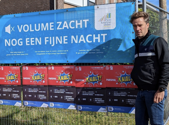 “Maar vaak zijn feestgangers op weg naar huis nog in een lawaaierige stemming. Dat kan voor onnodige bijkomende geluidsoverlast zorgen. Met de banners willen we feestvierders die een evenement verlaten eraan herinneren de nachtrust van de buurtbewoners niet te verstoren. Onze banner vraagt om het volume zacht te houden en toont enkele quotes met als doel het respect voor de buurtbewoners te versterken.”